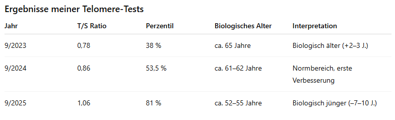 Deshalb habe ich meine Telomerlänge regelmäßig im Labor bestimmen lassen – und parallel begonnen, meinen Körper gezielt zu unterstützen.